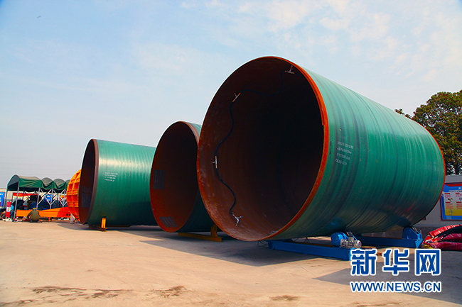 圖為黃浦江上游水源地連通管工程C5標段項目部場地內(nèi)置放的鋼管。