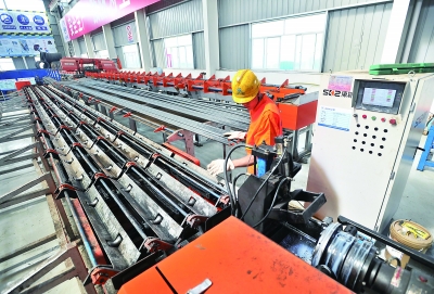 記者走到加工鋼筋構件的機器人處觀察發現,技術工人只需要在機器人上輸入鋼筋彎曲度和件數等數據,機器人就自動拉動盤條,不僅能將鋼筋拉直,而且還能將鋼筋加工成棱角分明的鋼構件,每一個鋼構件大小均保持一致,讓人嘆為觀止。